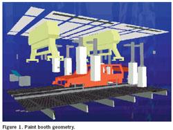 如圖1所示的底漆車間有一個(gè)典型的例子。為了看得清楚,隱藏側(cè)墻和陰影。